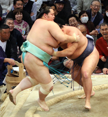 2敗豊昇龍は大関琴櫻と対戦した。右四つがっぷりからもつれるも