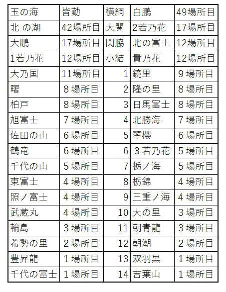 降を番付にしてみた。それが以下である。