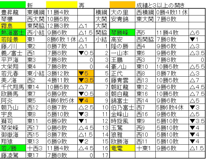 先場所7勝8敗は6人いた。そのうち7勝8敗で現状維持となった